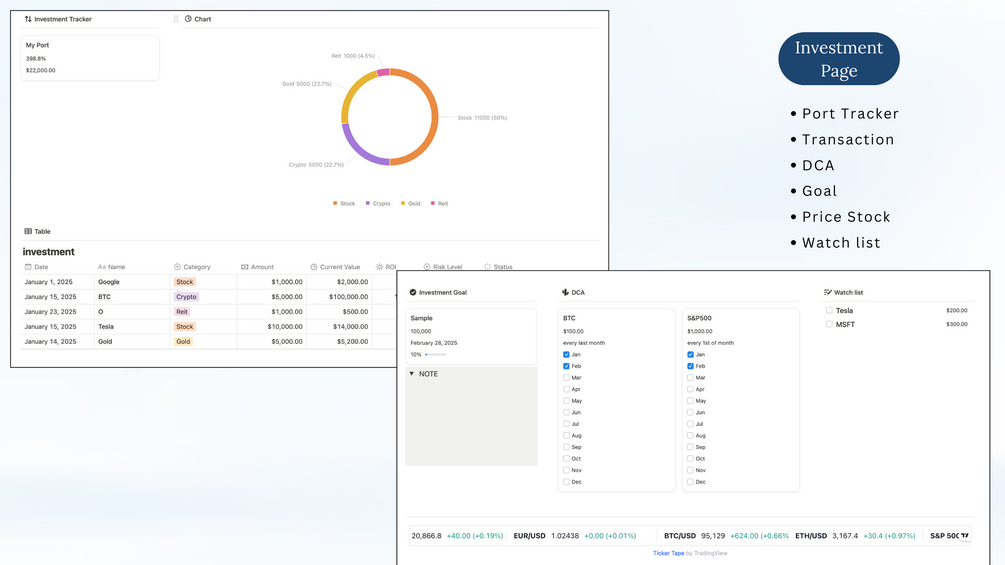 💸 Investment: Plan, monitor, and grow your portfolio.